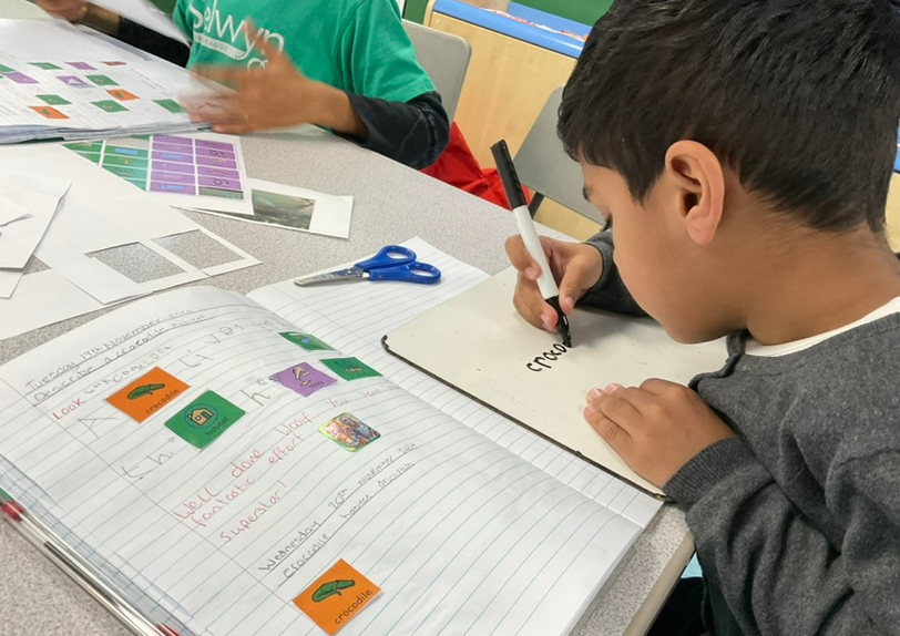 The focus on language development in children’s reading lessons is put to use in children’s writing with the emphasis on extending their vocabulary to enhance their pieces and engage the reader. Pupils learn to persevere and develop their